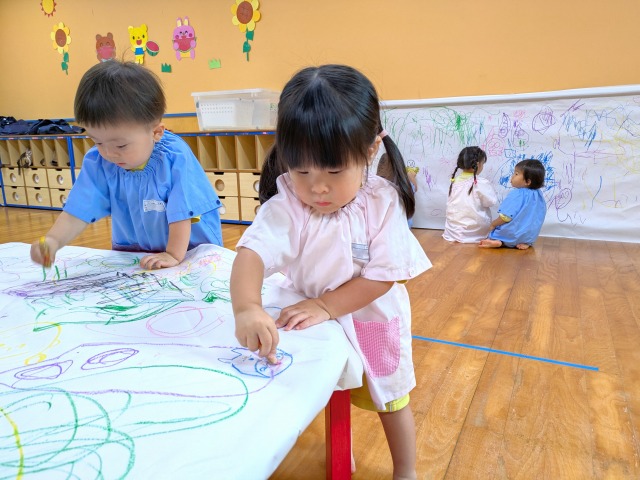 他の子どもや保育士と関わることで、順番を待つ、譲り合う、他者の気持ちを感じ取るといった対人からの刺激・社会性の一歩が育まれます。
