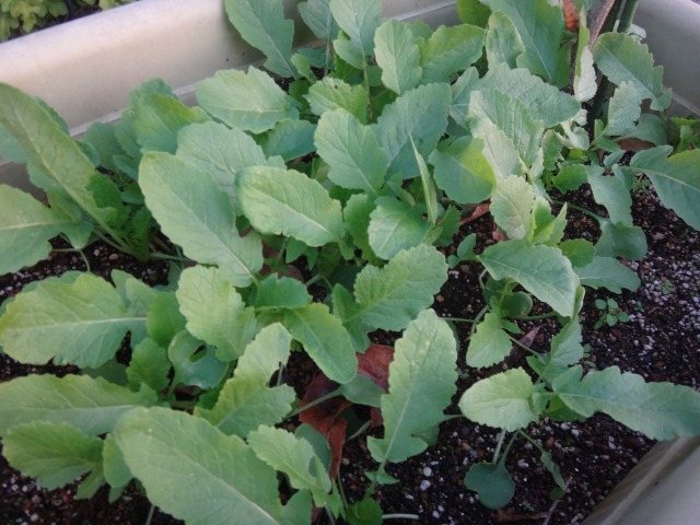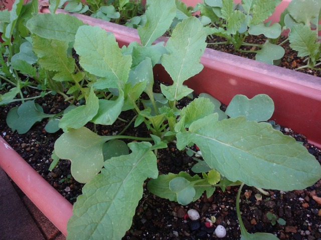 2週間ほど前、発芽温度としては気温が下がりすぎかと思いながら残っていた種をまいてみると、すくすく育っています。