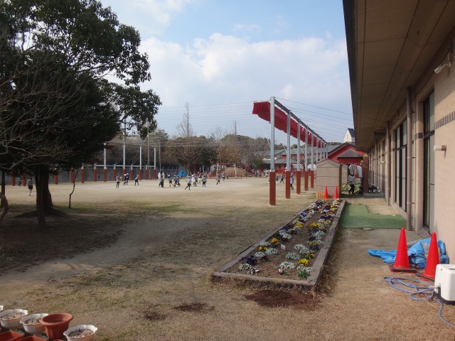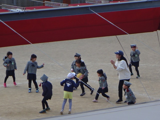 外遊びの時間に子どもたちがドッジボールをしていました。
