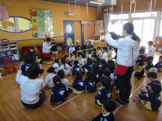 鬼が怖い子のために今日は心優しい「泣いた赤鬼」の話をしました。