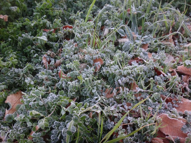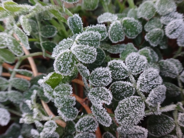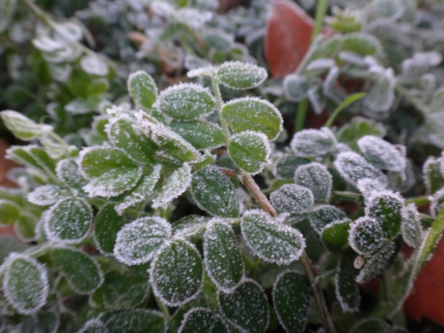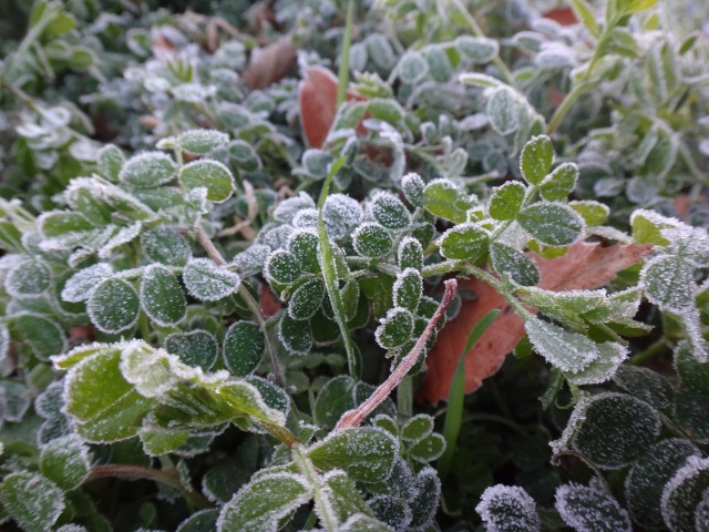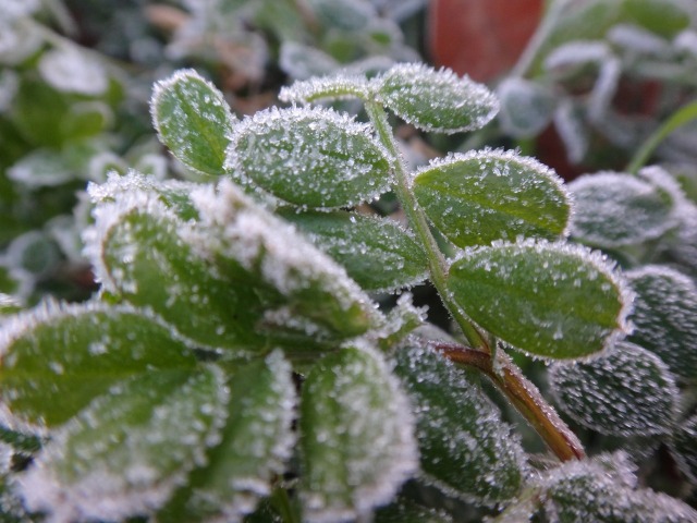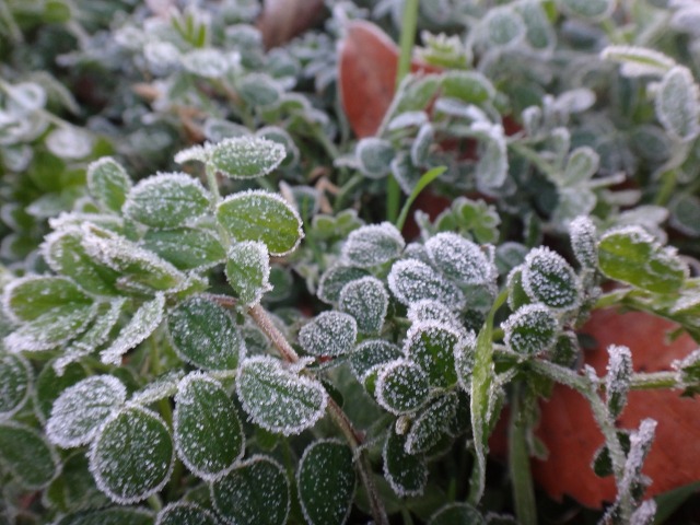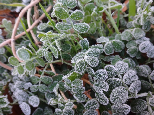 メダカの繁殖池には氷が張り、玄関前花壇のカラスノエンドウ(野草)には霜が降りていました。出勤した先生が車の表示はマイナス2度を示していたと教えてくれました。今朝は低温のため園長のガーデニングはお休みです。植物のためというより、自分の手が、作業手袋をしても寒い。子どもたちは幼稚園に来るんだよ。