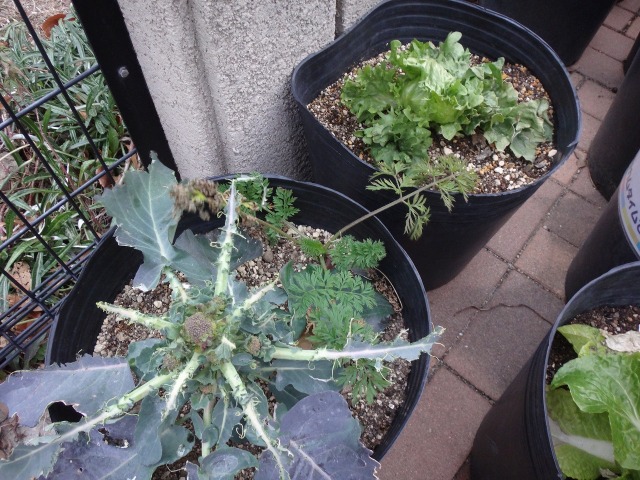 先週の雪が積もった日に野鳥がキャベツやブロッコリーの葉を食べてしまいました。最初はアオムシが食べたのかと思いましたが、この寒さではヒヨドリとかヒタキとかシジュウカラなどの小鳥たちでしょう。小鳥たちの腹の足しになってよかったです。