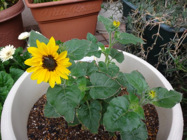 吉塚ゆりの樹幼稚園のヒマワリ組の皆さん、近いうちに小さいのがいっぱい咲く方のプランターを持っていくので、待っててね。