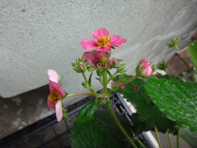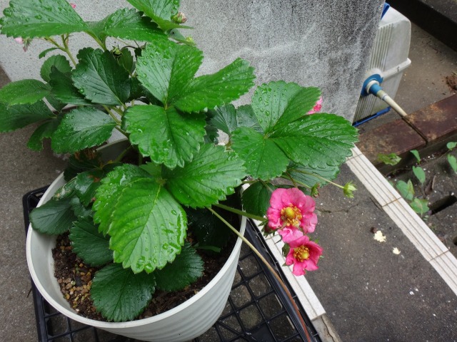 地島小学校への通学路で見かけたアジサイ、ビワ、アンズそしてイチゴ組のイチゴです。